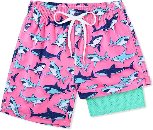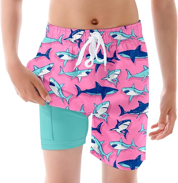 Boys Swim Trunks with Compression Liner Quick Dry Beach Shorts