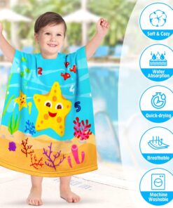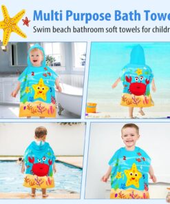 Designed as a poncho-style towel for easy on-and-off dressing.